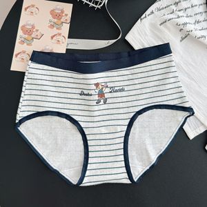MIU系学院风小熊纯棉透气学生少女条纹内裤舒适中腰三角裤10A抑菌