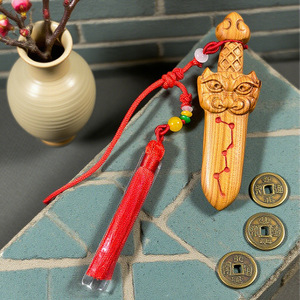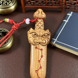 桃木虎头剑桃木剑真桃木小挂件双面七星剑文玩随身手把件饰品批发