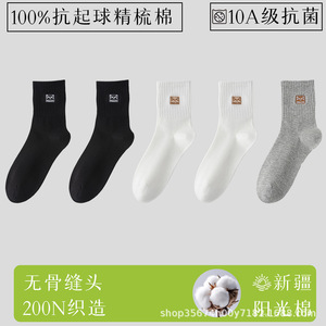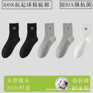 猫人袜子男款100%纯棉袜中筒透气运动棉袜夏季防臭吸汗10A抗菌袜