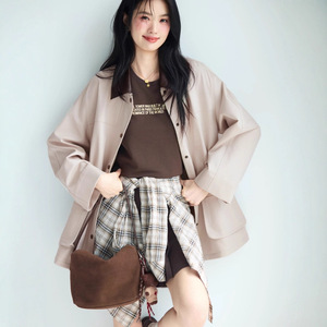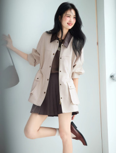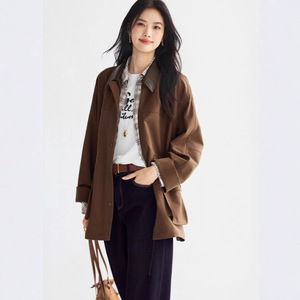 撞色皮领风衣式短外套女2025秋季新款复古潮流外套女1G8911061