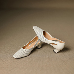 法式复古编织镂空中跟包头凉鞋女2025年夏季新款方头百搭粗跟女鞋