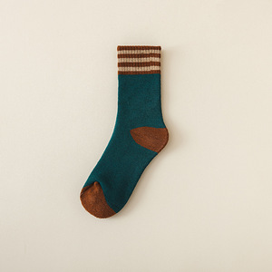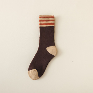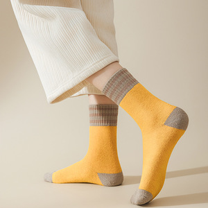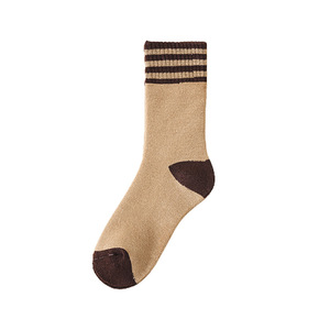 女袜子毛圈秋冬加绒加厚中筒袜三杠拼色保暖毛巾袜潮