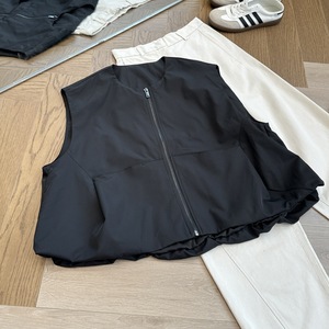 25秋季新款女士日常百搭圆领背心宽松街头时尚上衣拉链马甲0819e6