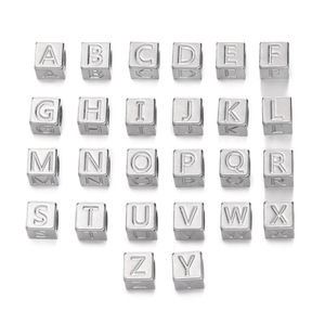 7*7mm不锈钢英文字母方块26个字母金色钢色正方体diy串珠项链配件