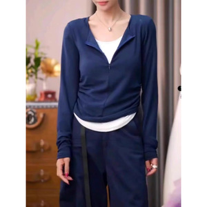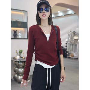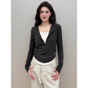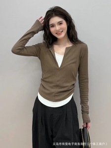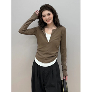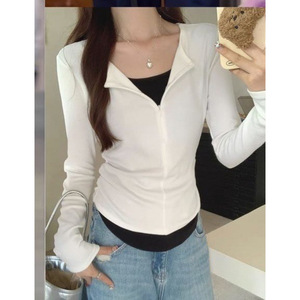 2025新款秋冬拉链假两件拼色上衣修身显瘦外穿外套女时尚百搭长袖