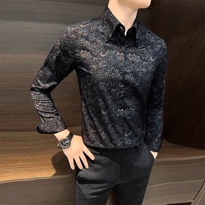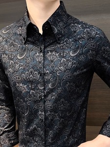 春秋季法式时尚花衬衫男士长袖修身复古碎花新款高级感痞帅花衬衣