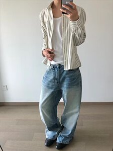 新款春秋季竖条纹复古长袖衬衫港风休闲宽松情侣外穿百搭衬衣外套