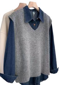 牛仔衬衫两件套秋季穿搭一整套2025新款气质盐系穿搭坎肩针织马甲