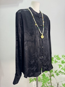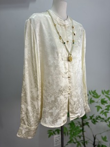2025秋季新款新中式国风纯色提花长袖衬衣高级感百搭宽松显瘦上衣