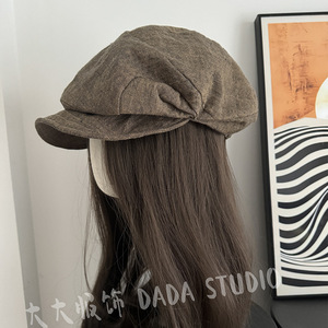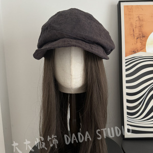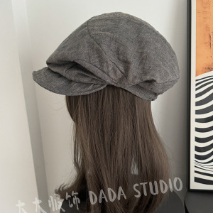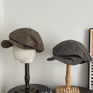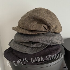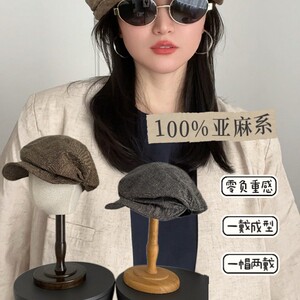 出口日单100%亚麻材质2025新款百搭素颜帽子简约休闲风显白贝雷帽