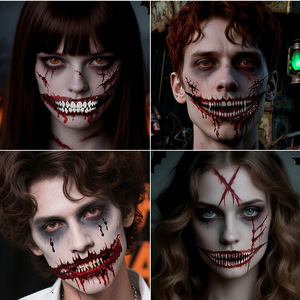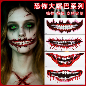 跨境欧美万圣节大嘴巴纹身贴派对聚会趣味化妆惊悚DIY嘴妆容脸贴