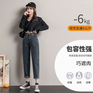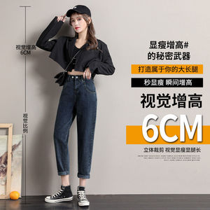 弹力高腰牛仔裤女春秋装年新款宽松显瘦百搭哈伦萝卜老爹裤子
