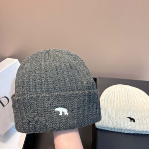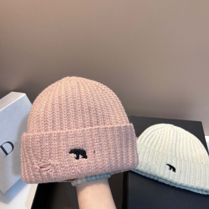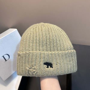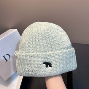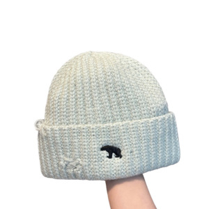 冬季新款北极熊破洞针织帽时尚轻奢护耳减龄毛线帽户外百搭冷帽女