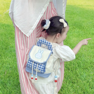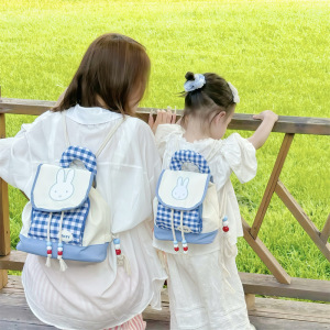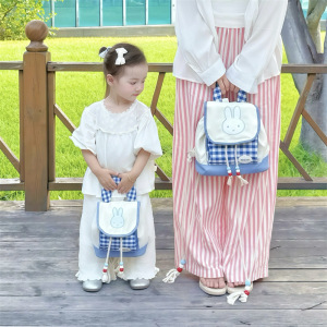 幼儿园中小班宝宝书包可爱小兔子男女童双肩包洋气格子亲子背包潮