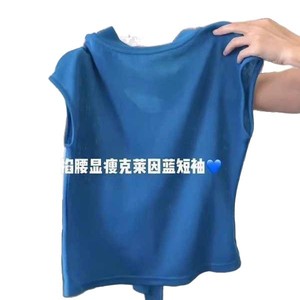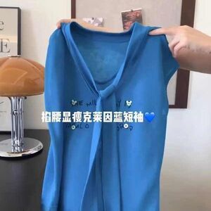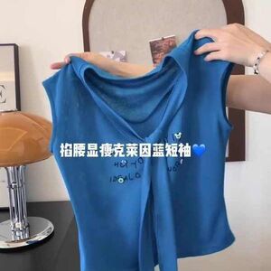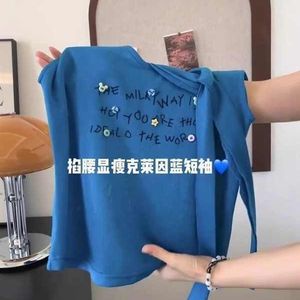 大码克莱因蓝色字母印花短袖T恤女2025夏季新款显瘦别致洋气上衣