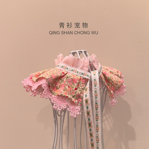 【青衫宠物】宠物口水巾宠物猫咪狗狗布偶花边衣服碎花围脖批发