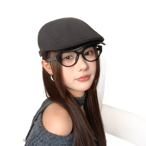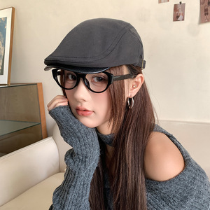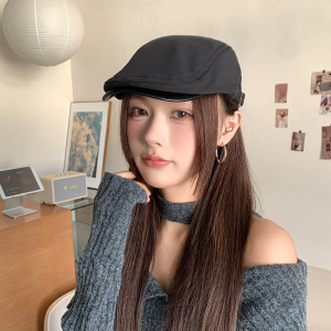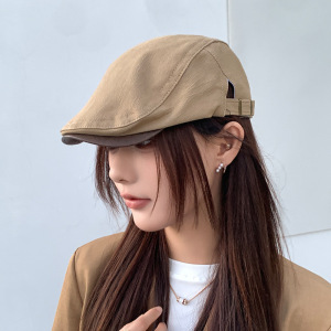 日系皮檐拼接复古前进帽子女夏季百搭画家帽韩版显脸小鸭舌报童帽
