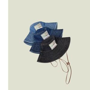 日系贴布牛仔渔夫帽女复古水洗做旧大帽檐盆帽显脸小遮阳防晒帽子