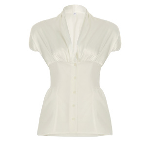 2025夏季新款欧美跨境气质纯色V领收腰设计排扣短袖衬衫T恤上衣批