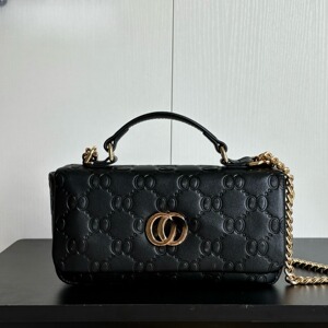 现货GG链条锁扣压花斜挎包手提包2025新款高级感百搭真皮女包外贸