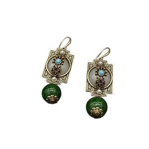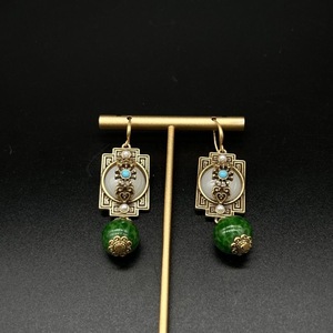 新中式古风花丝耳坠复古平安锁翠绿圆珠做旧高级感气质国风耳饰