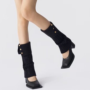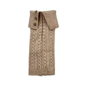 绵羊绒秋冬保暖百搭雪地靴针织翻边腿套白色复古麻花条纹堆堆袜套