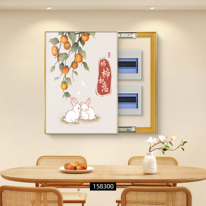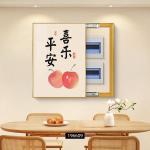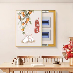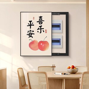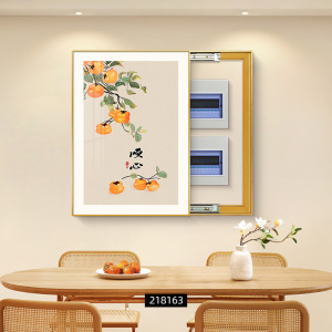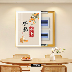 新中式电表箱装饰画竖款免打孔柿子餐厅强弱电箱电源开关遮挡挂画