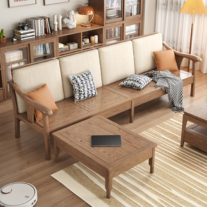 全实木沙发小户型客厅冬夏两用三人位白蜡木新中式可拆洗布艺沙发
