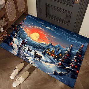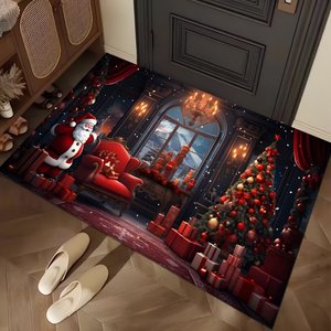 跨境temu新款圣诞节系列地垫玄关入户门地垫装饰地毯耐磨耐脏脚垫