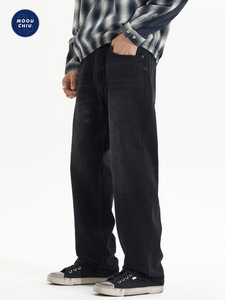 沐丘男装∣潮牌美式高街水洗牛仔裤男士vibe风宽松直筒水洗阔长裤
