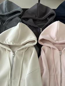 粉色短款拉链外套连帽卫衣女2025秋季宽松百搭休闲纯色小个子上衣