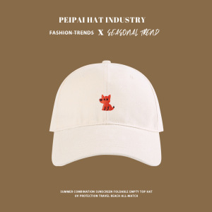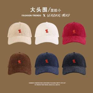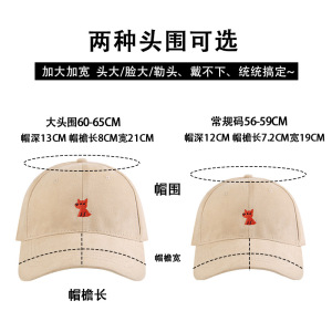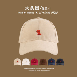 可爱橘色狐狸棒球帽女大头围宽檐显脸小防晒遮阳帽春秋萌趣鸭舌帽