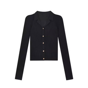 蓝色翻领针织开衫外套女早秋季收腰内搭软糯毛衣短款独特绝美上衣