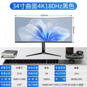 34英寸带鱼屏4K180Hz曲面无边框电脑显示器电竞台式LED游戏显示屏