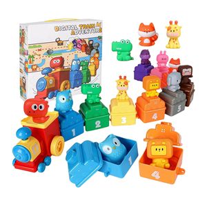 跨境趣味数字火车大冒险二合一手指玩偶数字认知拼装早教益智玩具