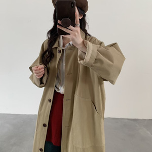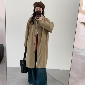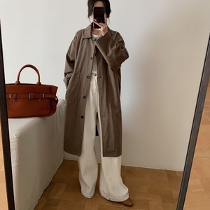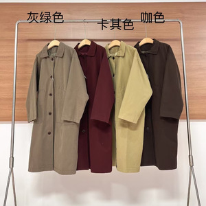 气质通勤翻领大口袋长款外套女 2025秋季新款宽松大码风衣