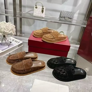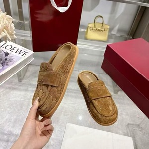 外贸gi新款复古包头拖时尚轻奢外穿字母刺绣厚底一脚蹬休闲凉拖鞋