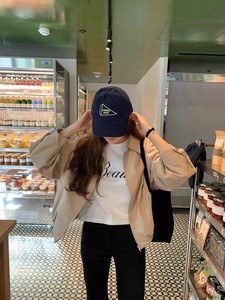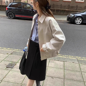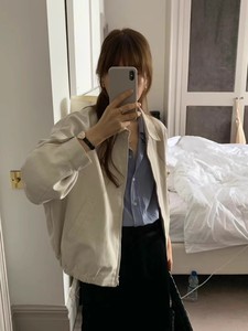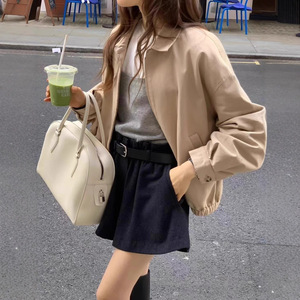 现h韩国东大门同款25年秋新ounce复古纯色简约百搭宽松夹克外套