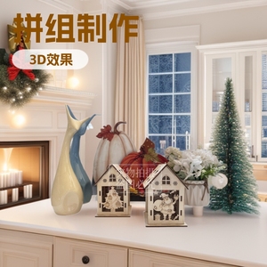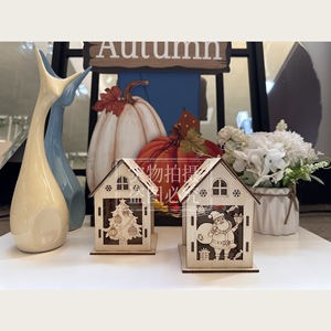 2025圣诞预热 3D木制圣诞房子DIY套装 拼接装饰摆件