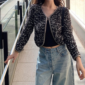 Lilylik曜黑星河"家制纱线 混色精致千金感小香针织开衫2025