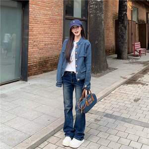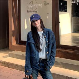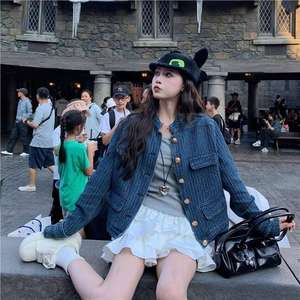 2025春秋季新款牛仔外套女小香风蓝色设计感小众复古百搭立领夹克