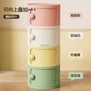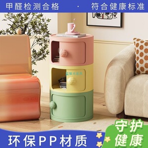 奶油风床头柜现代简约窄边收纳置物创意迷你儿童小型卧室圆形柜子