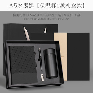 256-水墨黑【130张】保温杯+U盘+金属笔+礼盒