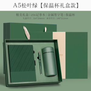256-松叶绿【130张】保温杯+金属笔+礼盒