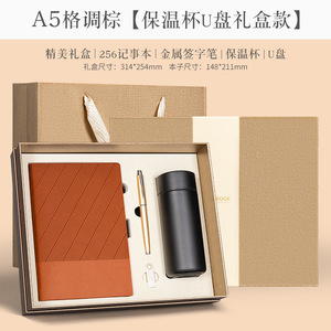 256-格调棕【130张】保温杯+U盘+金属笔+礼盒