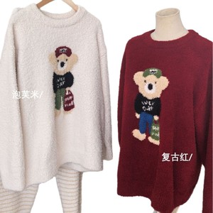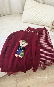 熊熊忙碌复古卡通小熊家居服套装女加厚半边绒休闲舒适可外穿睡衣