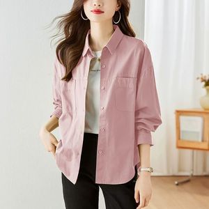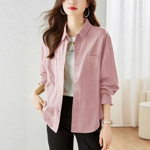 春秋装新款韩版宽松衬衫外套女长袖简约气质衬衣宽松休闲上衣