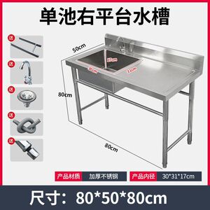 默认带单冷龙头【加厚面板】稳固不晃-80*50单池右平台经济款