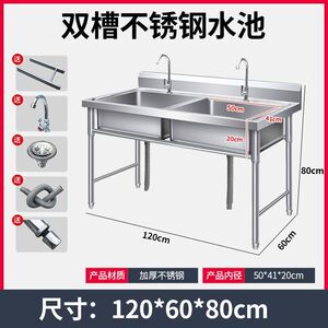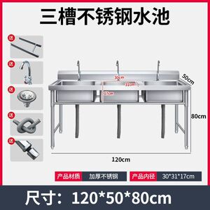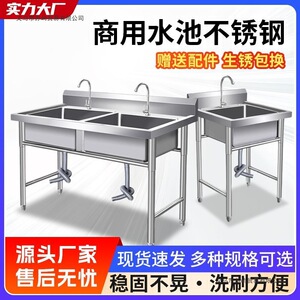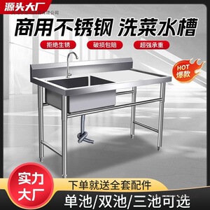 不锈钢商用水槽单槽双槽水池带支架厨房洗菜池洗碗槽消毒池三连池