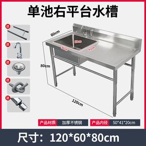 默认带单冷龙头【加厚面板】稳固不晃-80*50单池右平台加厚款
